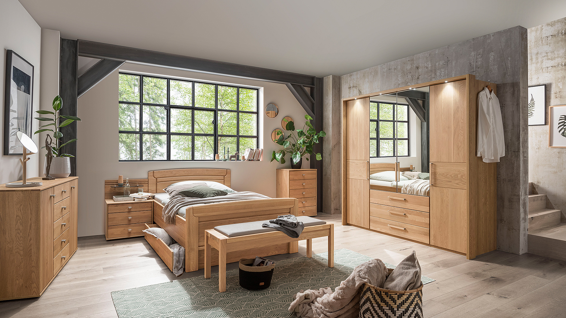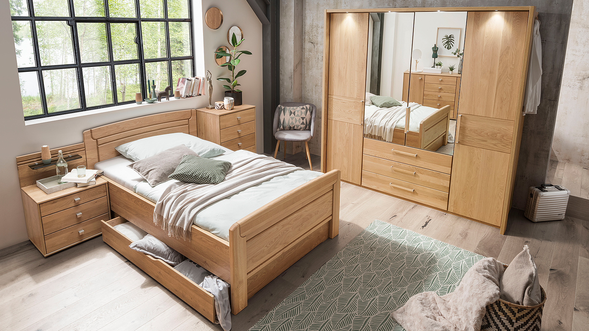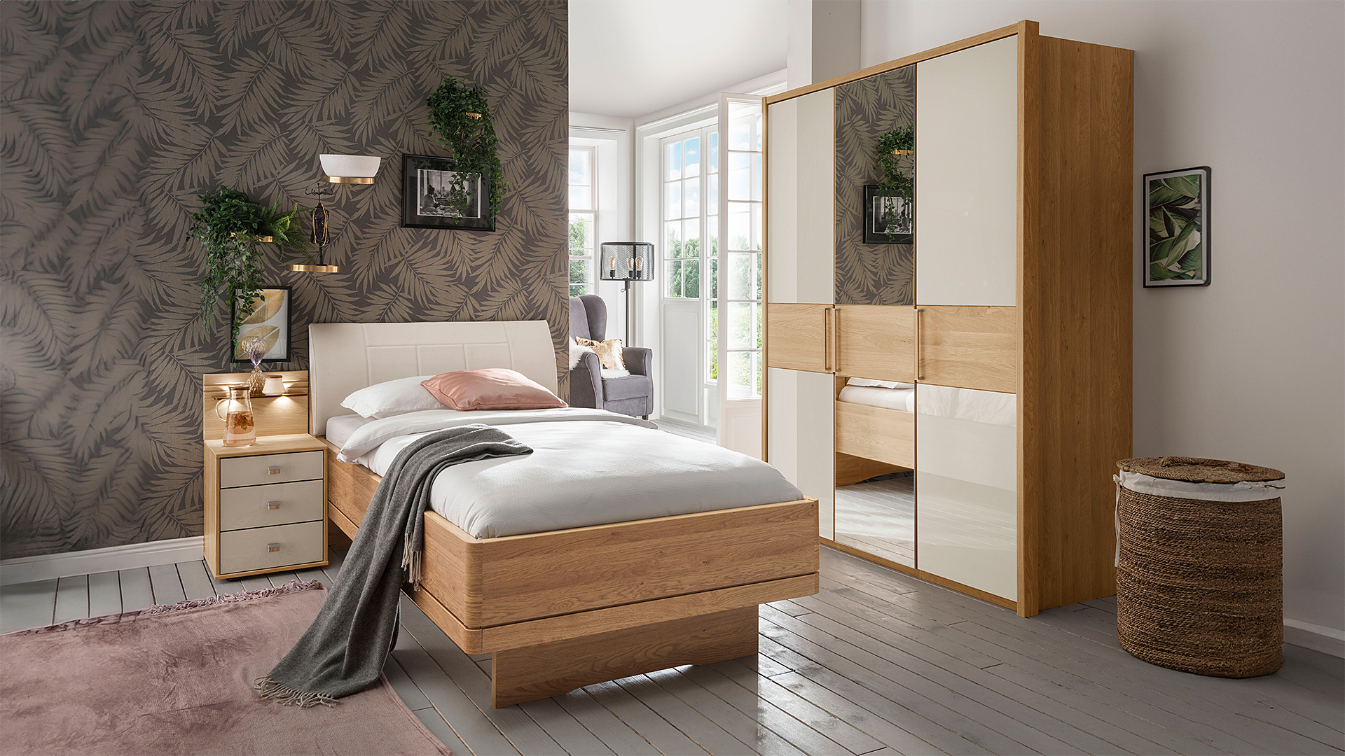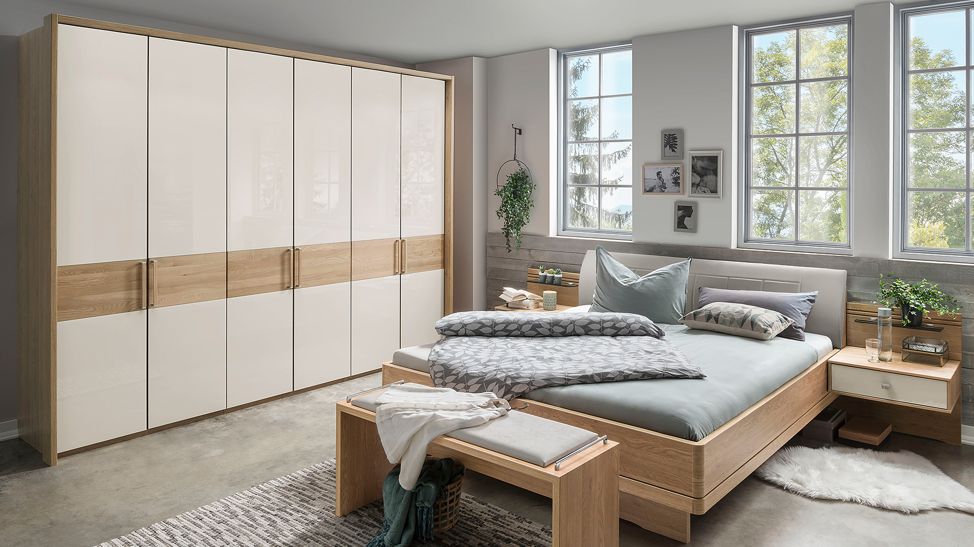 Das Schlafzimmerprogramm KIRUNA kombiniert natürliche Materialien mit modernen Designelementen und bietet eine Vielzahl an individuellen Gestaltungsmöglichkeiten. Ob Drehtürenschränke, Schwebetürenschränke oder Komfortbetten – KIRUNA steht für Funktionalität und stilvolle Akzente, die sich perfekt in jede Wohnumgebung integrieren.
