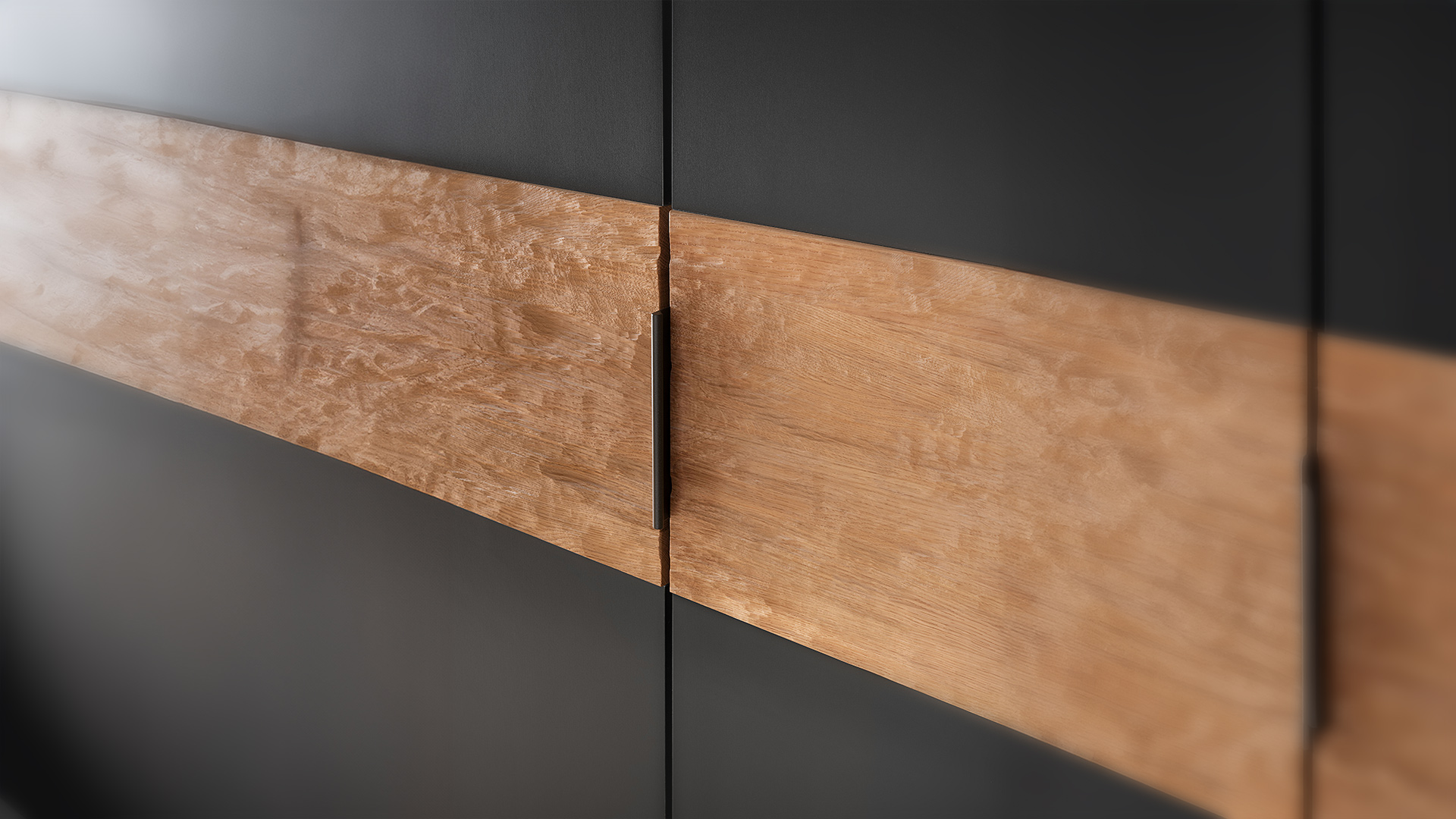 Die Drehtürenschränke der CADIZ-Serie überzeugen durch ihre Vielseitigkeit und Funktionalität. Sie sind in zwei Höhen (216 cm und 236 cm) sowie in acht Breiten erhältlich. Die Fronten können entweder in einem modernen Dekor oder mit Kristallspiegeltüren gestaltet werden, ergänzt durch Querriegel in massivem Riffholz. Die Türen verfügen über gedämpfte Scharniere, die ein geräuschloses Schließen gewährleisten. Optional sind Passepartout-Rahmen und Kranzleisten mit eleganter LED-Beleuchtung erhältlich.