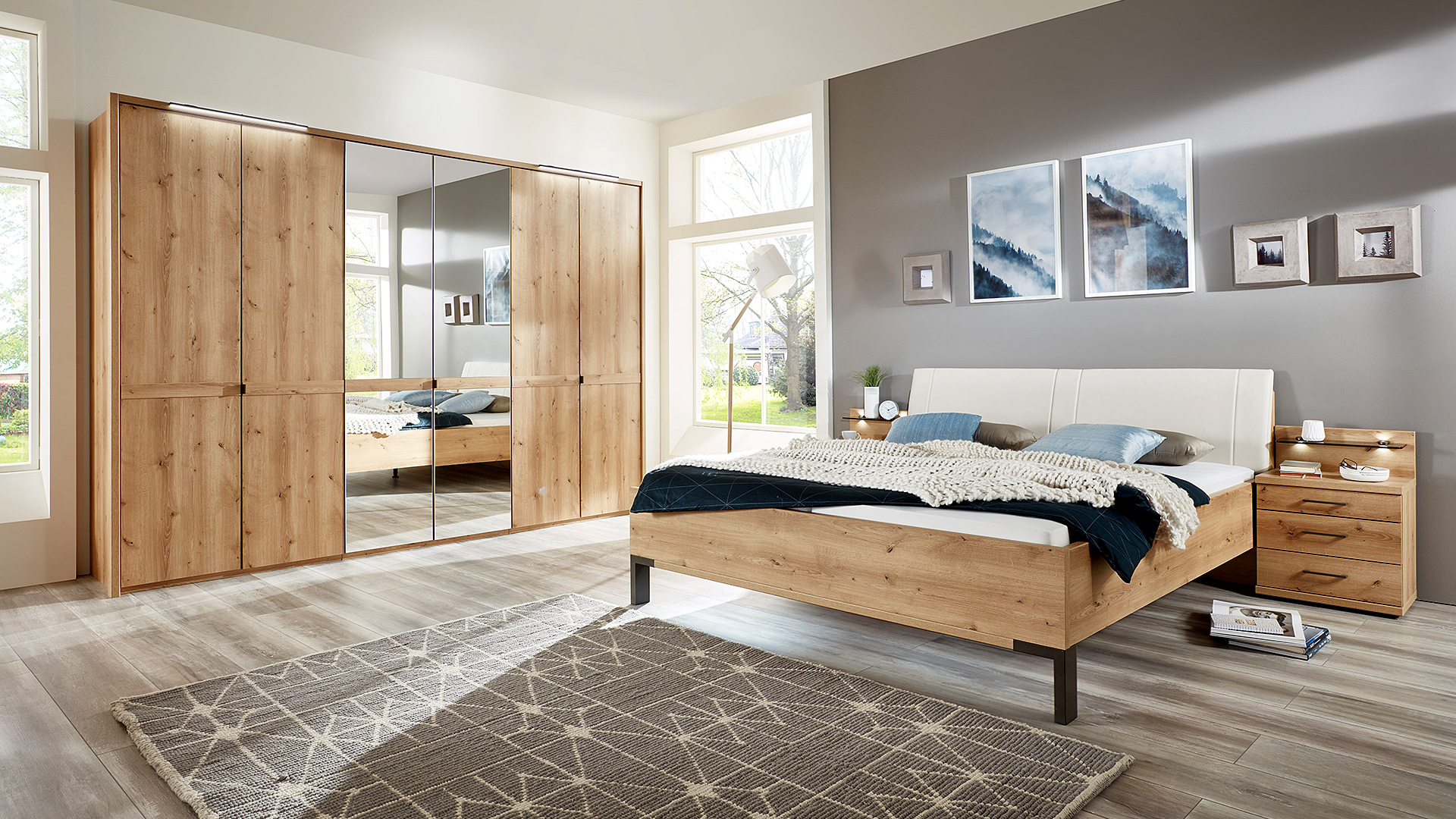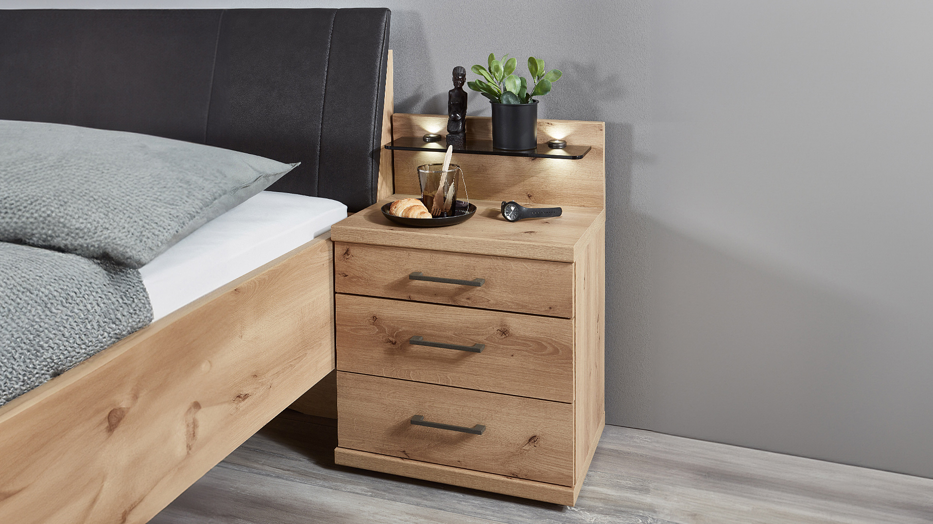 Nachtschränke und dazugehörige Paneele, diverse Kommodenausführungen, eine Ankleidebank, Spiegel und weitere Beimöbel ergänzen das Produktangebot von MEXIKO perfekt.