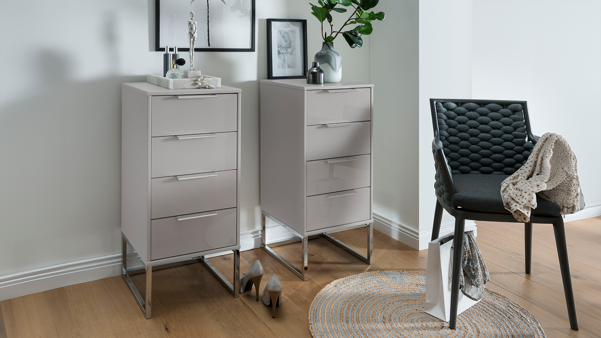 - Griffe wahlweise in Chrom, Silber, Schiefer