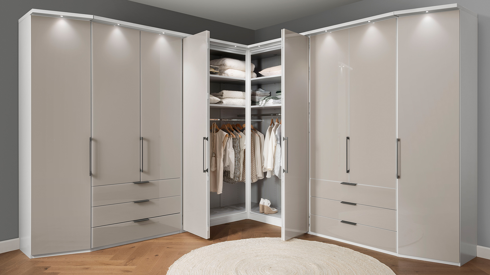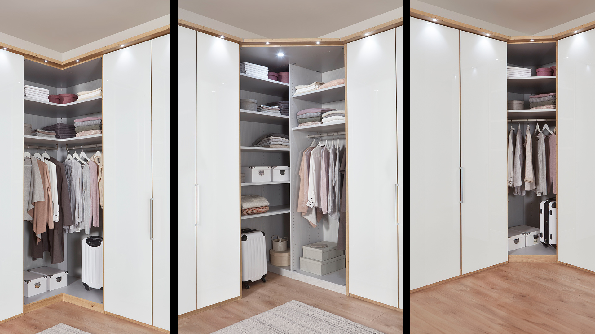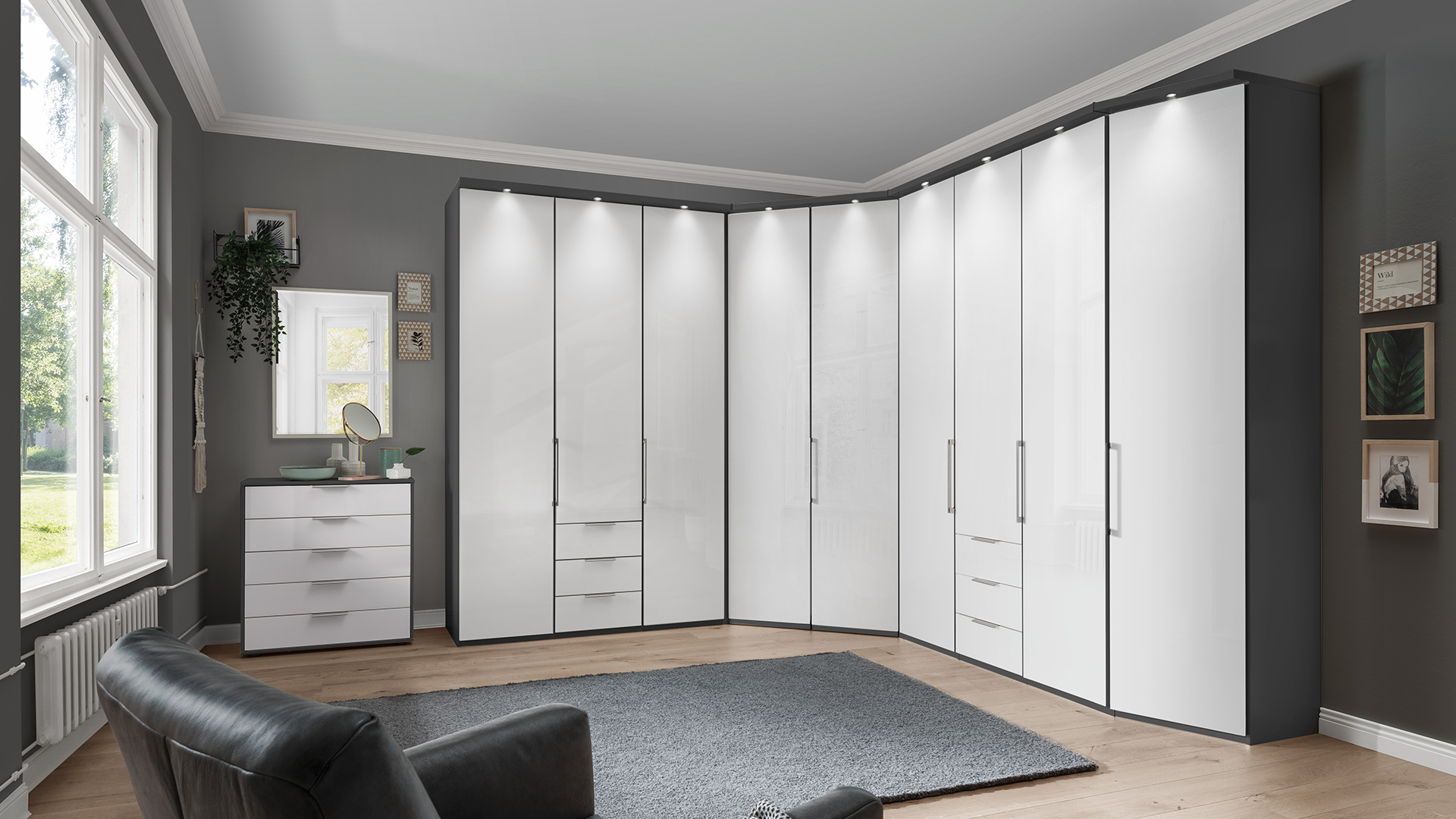 Abgestimmt auf die Möbelserie MONACO erhalten Sie ergänzendes Schrankzubehör wie Passepartout-Rahmen, LED-Beleuchtungen und Kranzleisten sowie Einlegeböden, Schubkasteneinsätze oder diverse Halter und Auszüge zur perfekten Rundumausstattung Ihres neuen Schranksystems.