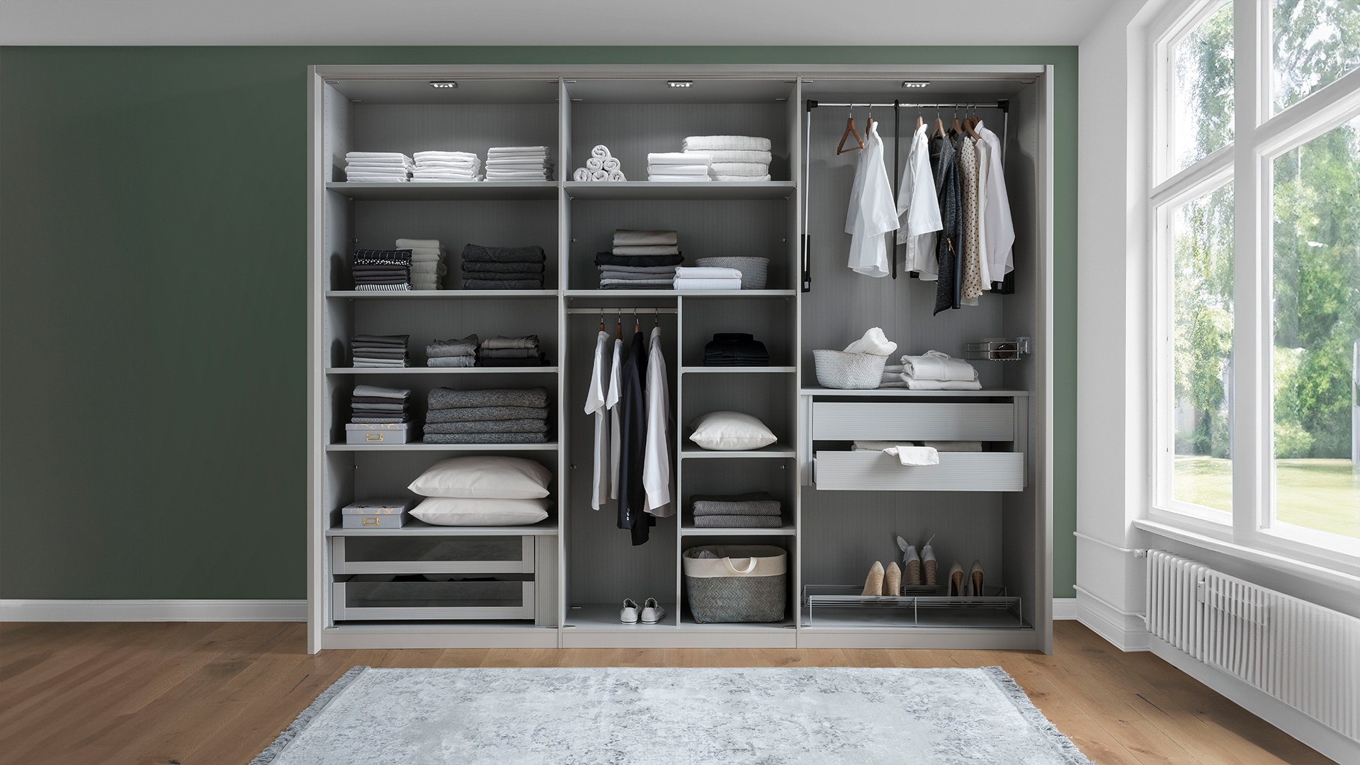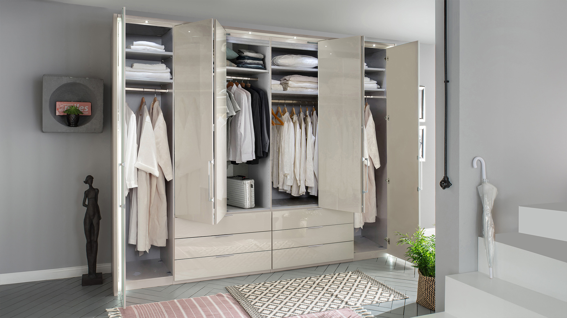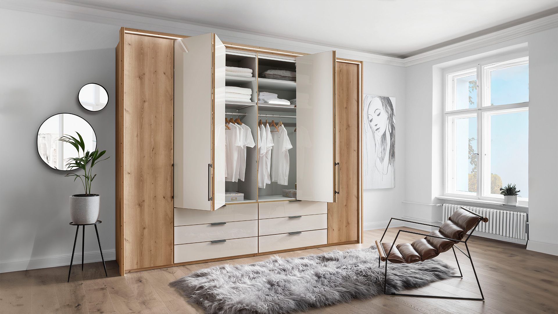 Abgestimmt auf die Möbelserie MONACO erhalten Sie ergänzendes Schrankzubehör wie Passepartout-Rahmen, LED-Beleuchtungen und Kranzleisten sowie Einlegeböden, Schubkasteneinsätze oder diverse Halter und Auszüge zur perfekten Rundumausstattung Ihres neuen Schranksystems.