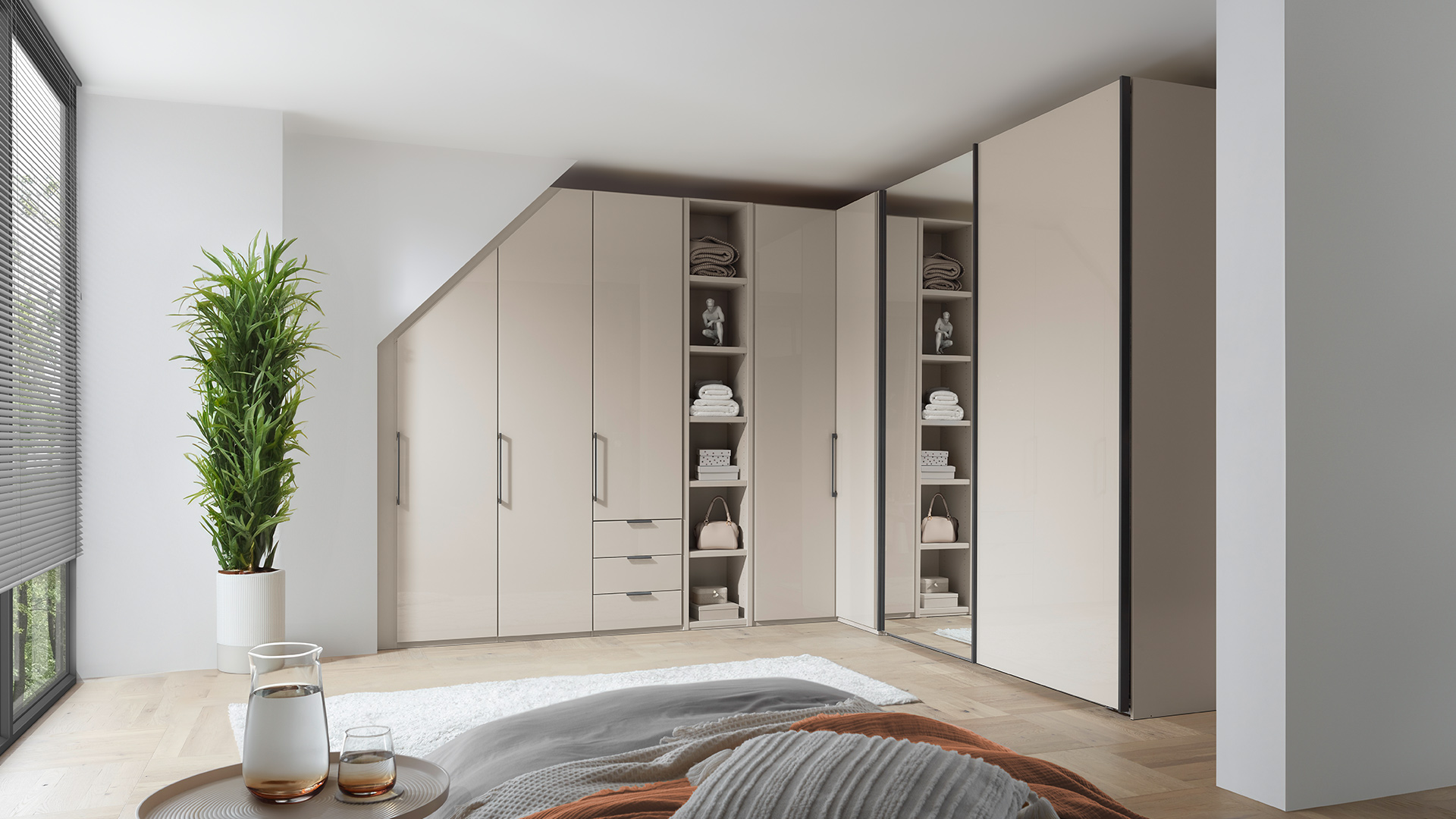 Hochwertig, edel und modern: Die variable Möbelserie MONACO überzeugt Sie mit vielfältigen Kombinationsmöglichkeiten und bietet Ihnen dank des cleveren Schranksystems optimal genutzten Stauraum für Ihr Schlaf- oder Ankleidezimmer. Die umfangreiche MONACO Serie glänzt dabei neben Futonbetten, Nachtkonsolen und weiteren Beimöbeln mit zahlreichen Schrankvariationen, bei denen leichtgängige Falttüren und unsere neu entwickelte 90 Grad Ecklösung die Highlights darstellen.