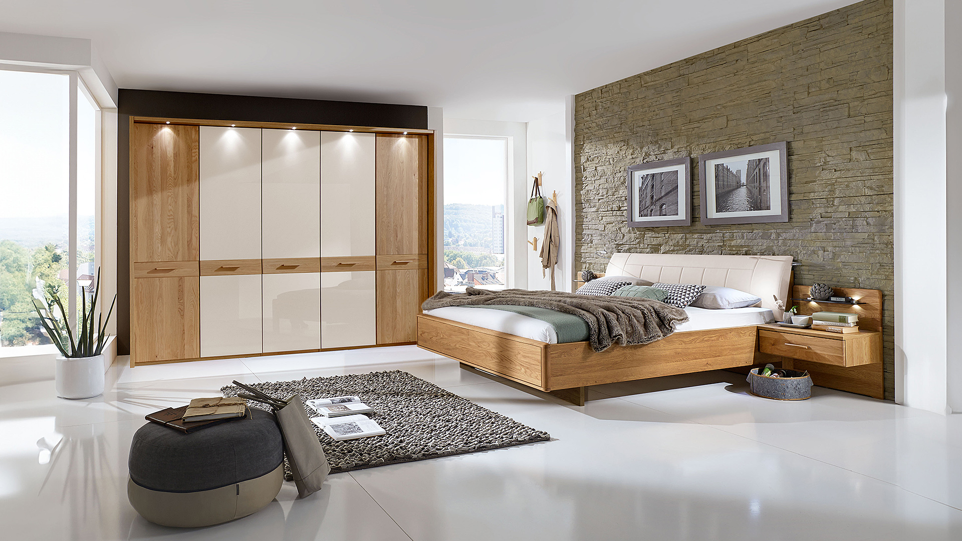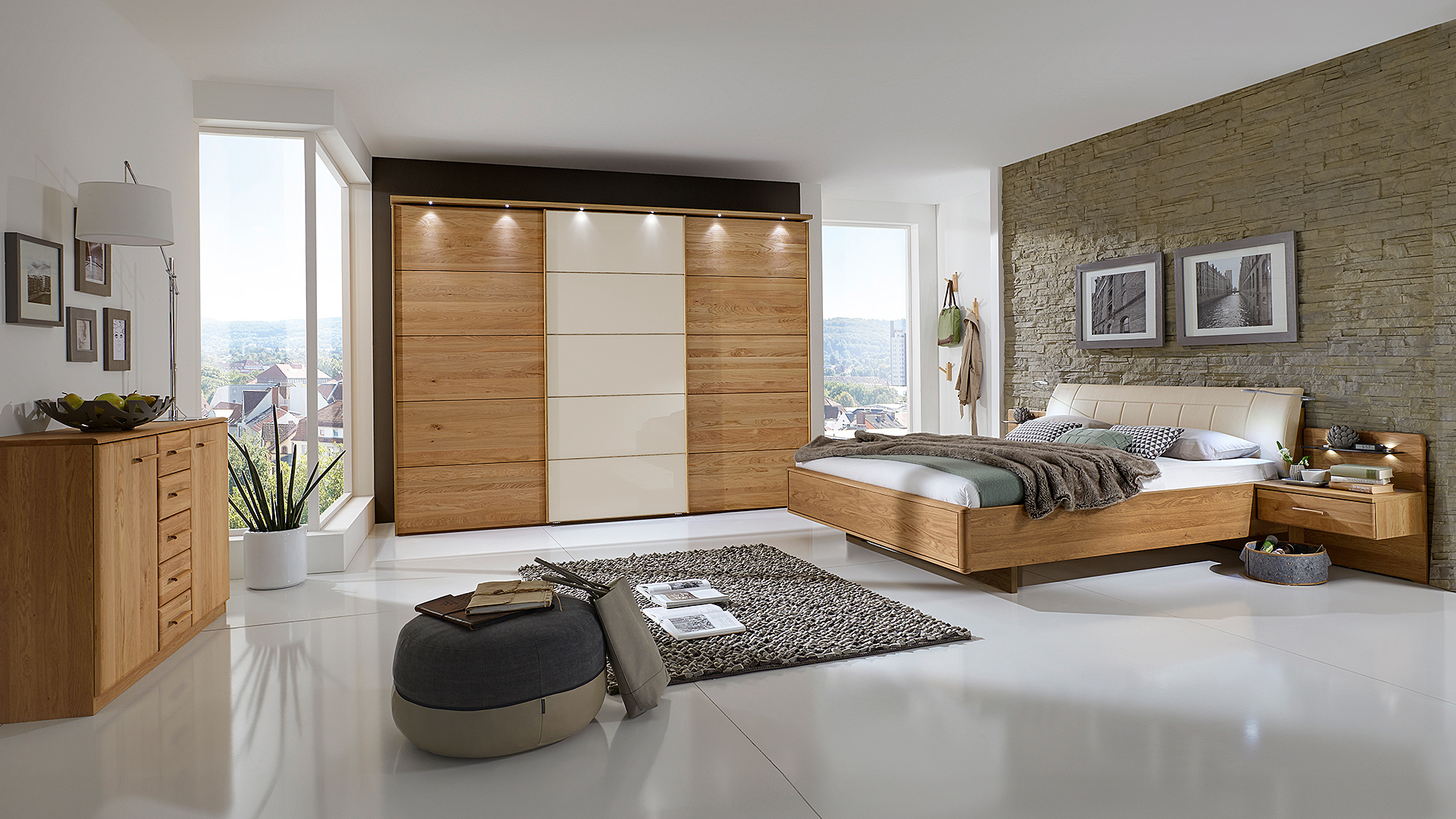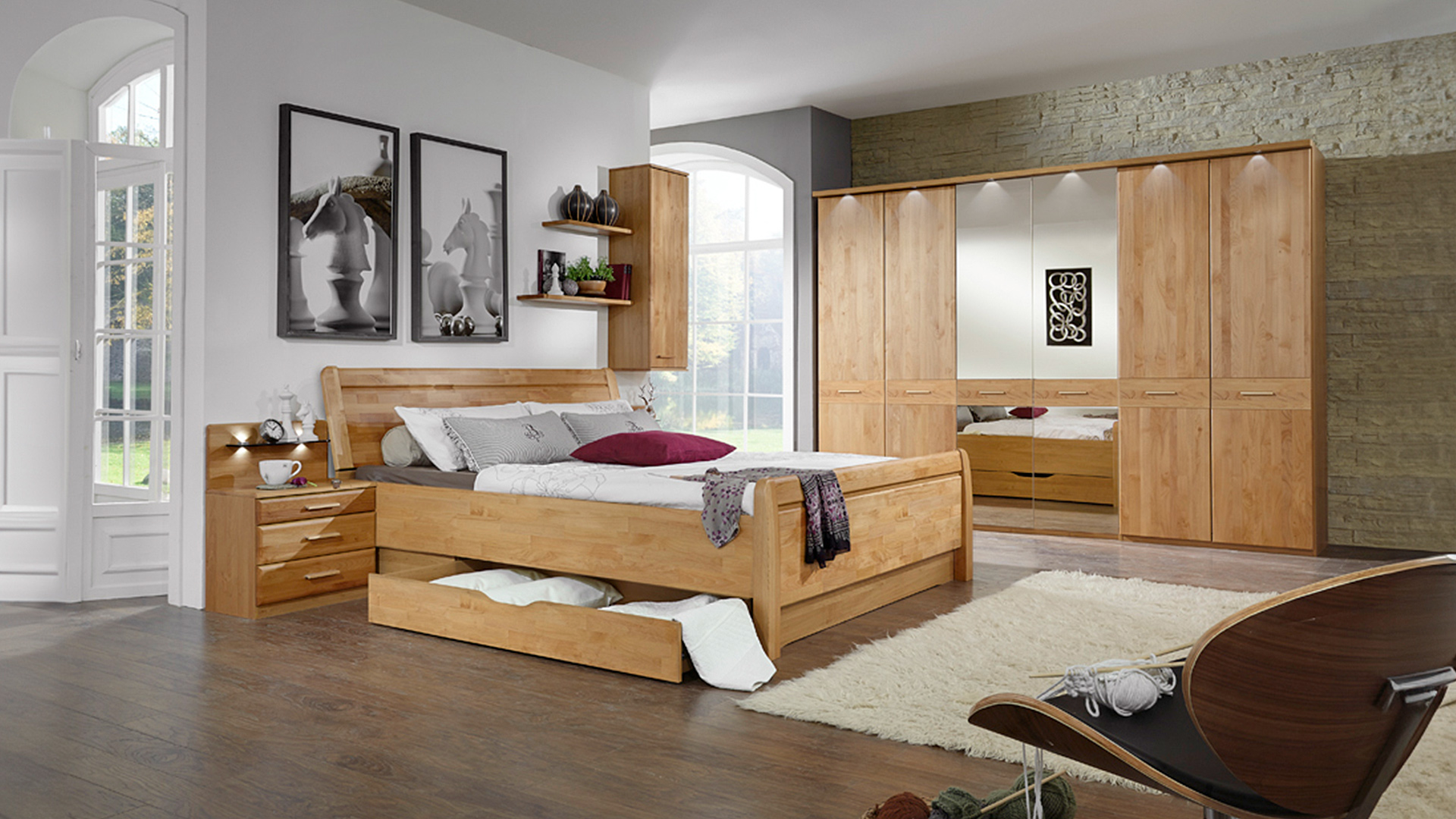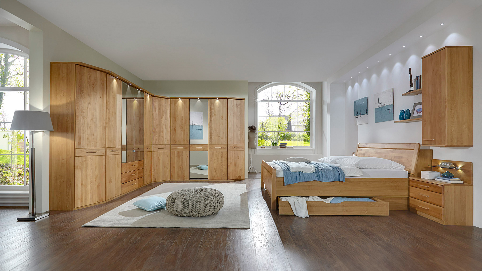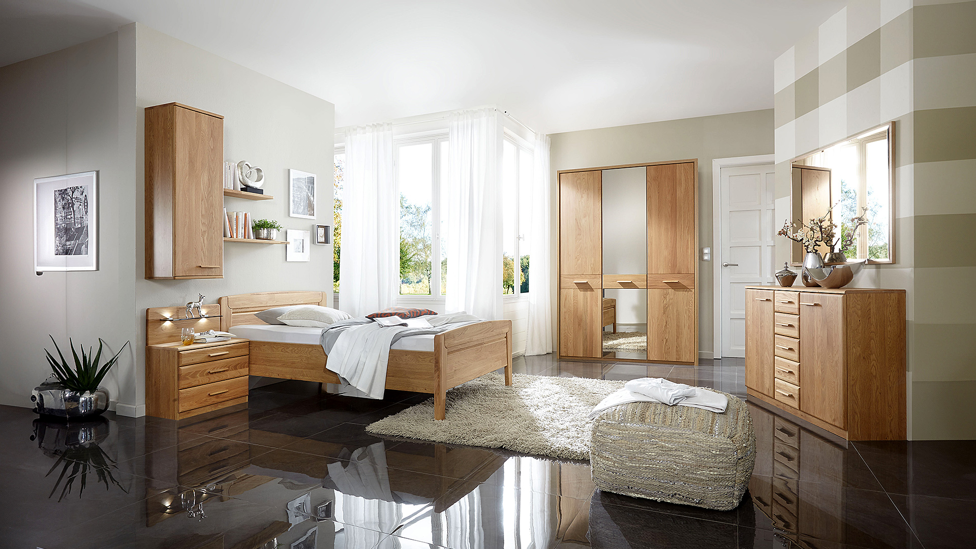 Sie sind auf der Suche nach dem perfekten Schlafzimmer? Dann haben wir mit TOLEDO genau das Richtige für Sie. Das exklusive Schlafzimmer-Programm ist in den wunderschönen Korpusfarben Erle teilmassiv und Eiche teilmassiv erhältlich.