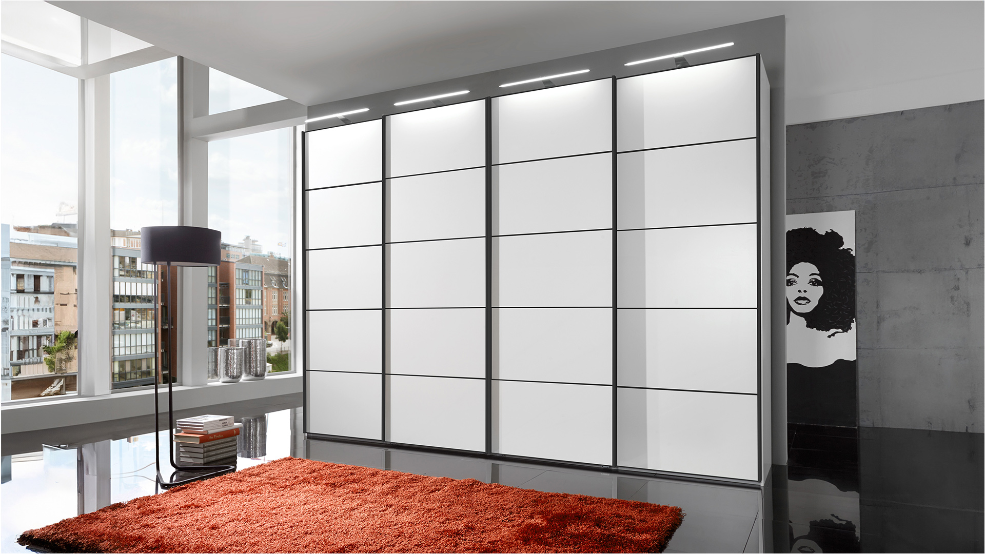 - Schwebetürenschränke in 8 Breiten und 2 Höhen
