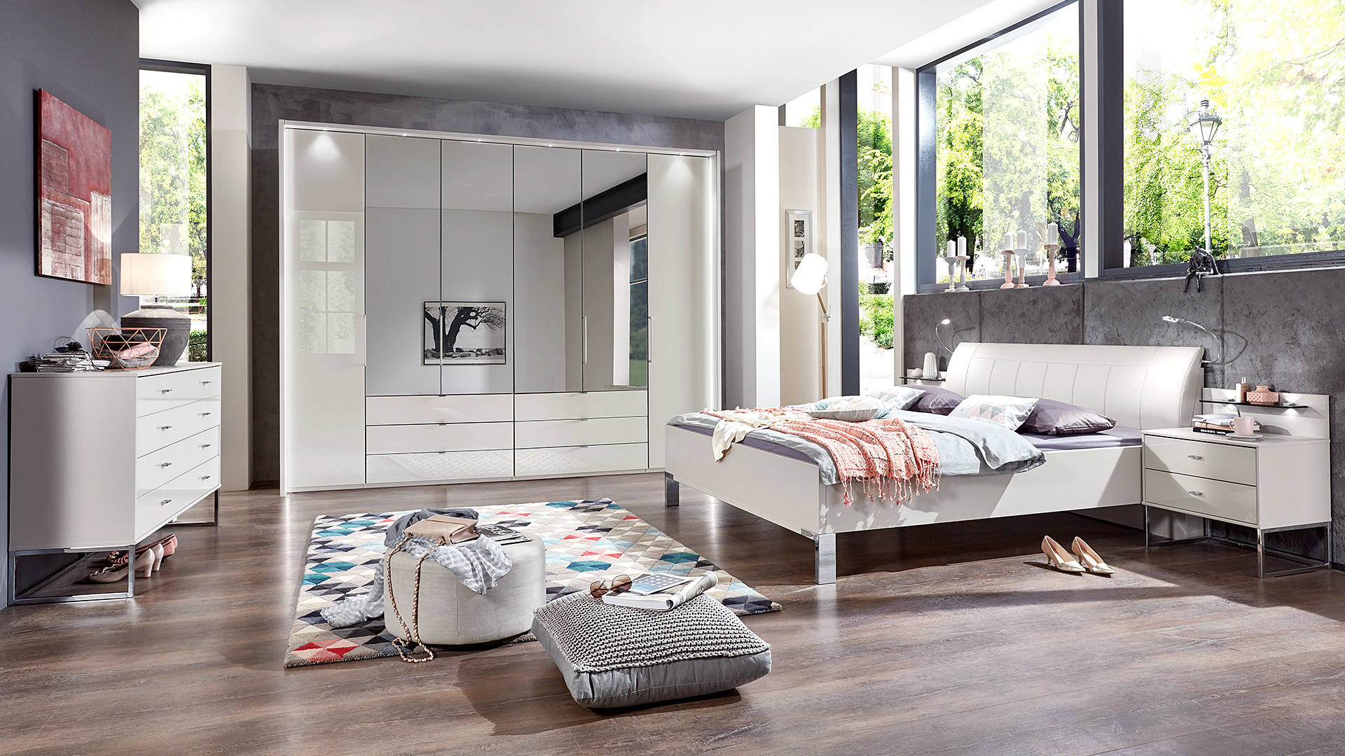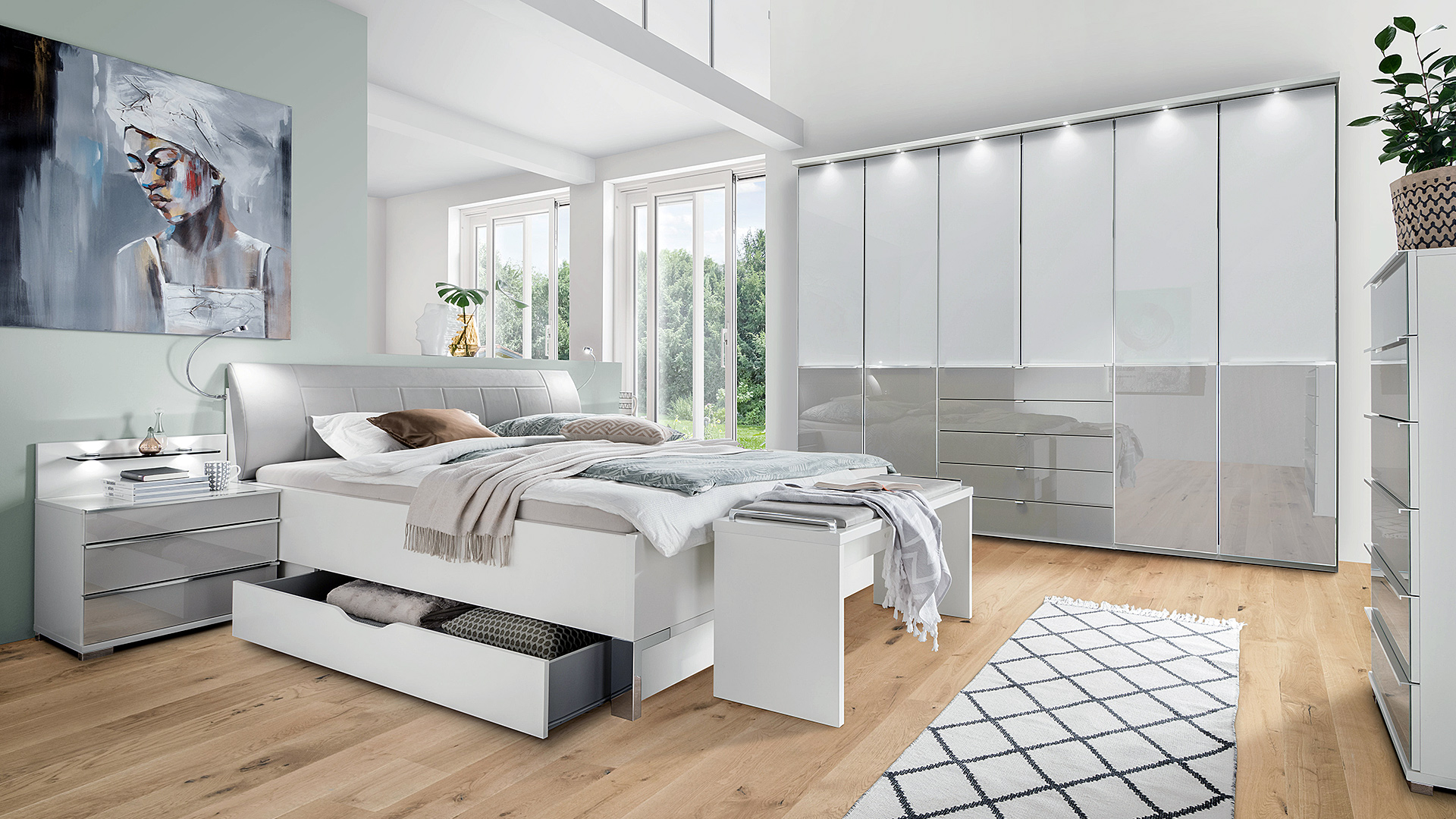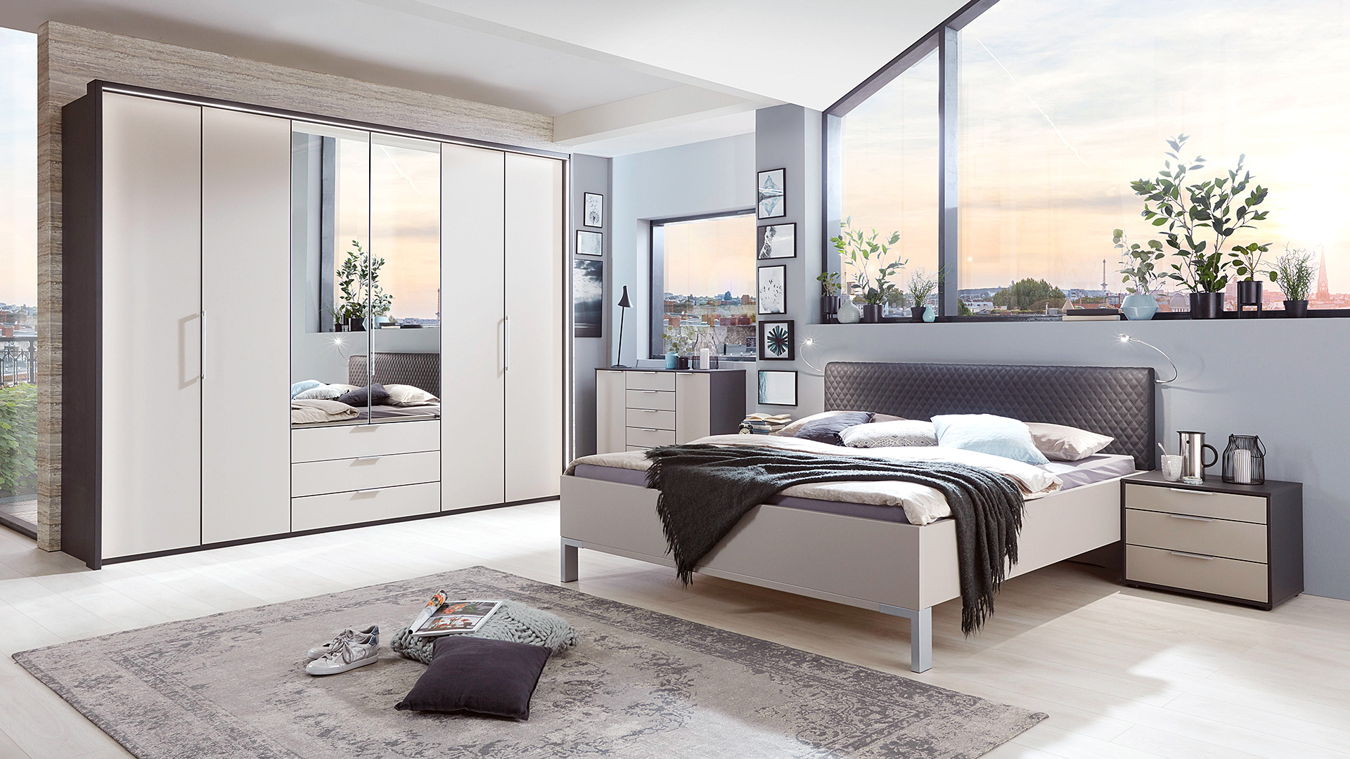 Neben dem Bett ist der Schrank bzw. das Schranksystem das prägende Schlafzimmermöbel. Darum legen wir auf unser Angebot an hochwertigen Schranksystemen besonderes Augenmerk. Unterschiedlichste Innen-Konfigurationen, Fronten, Farben und Materialien sorgen hier für eine breite Auswahl für alle, die gezielt nach einem Schranksystem „Made in Germany“ suchen.